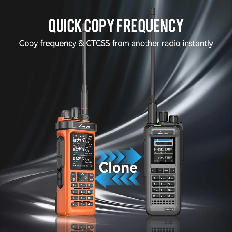 - Bluetooth App & Wireless Frequency Copy: Configure and manage your walkie talkies directly from your smartphone using Bluetooth wireless programming. The wireless frequency copy feature allows you to quickly duplicate radio settings without cables, delivering ultimate convenience for both beginners and advanced users.